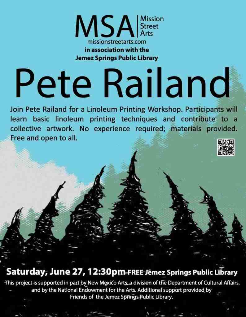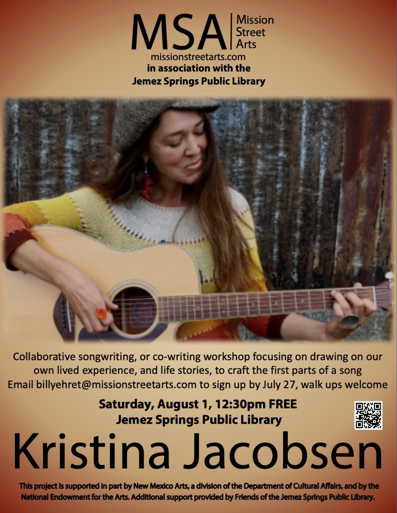 These events are supported in part by New Mexico Arts, a division of the Department of Cultural Affairs, and by the National Endowment for the Arts. Additional support provided by Friends of the Jemez Springs Public Library.